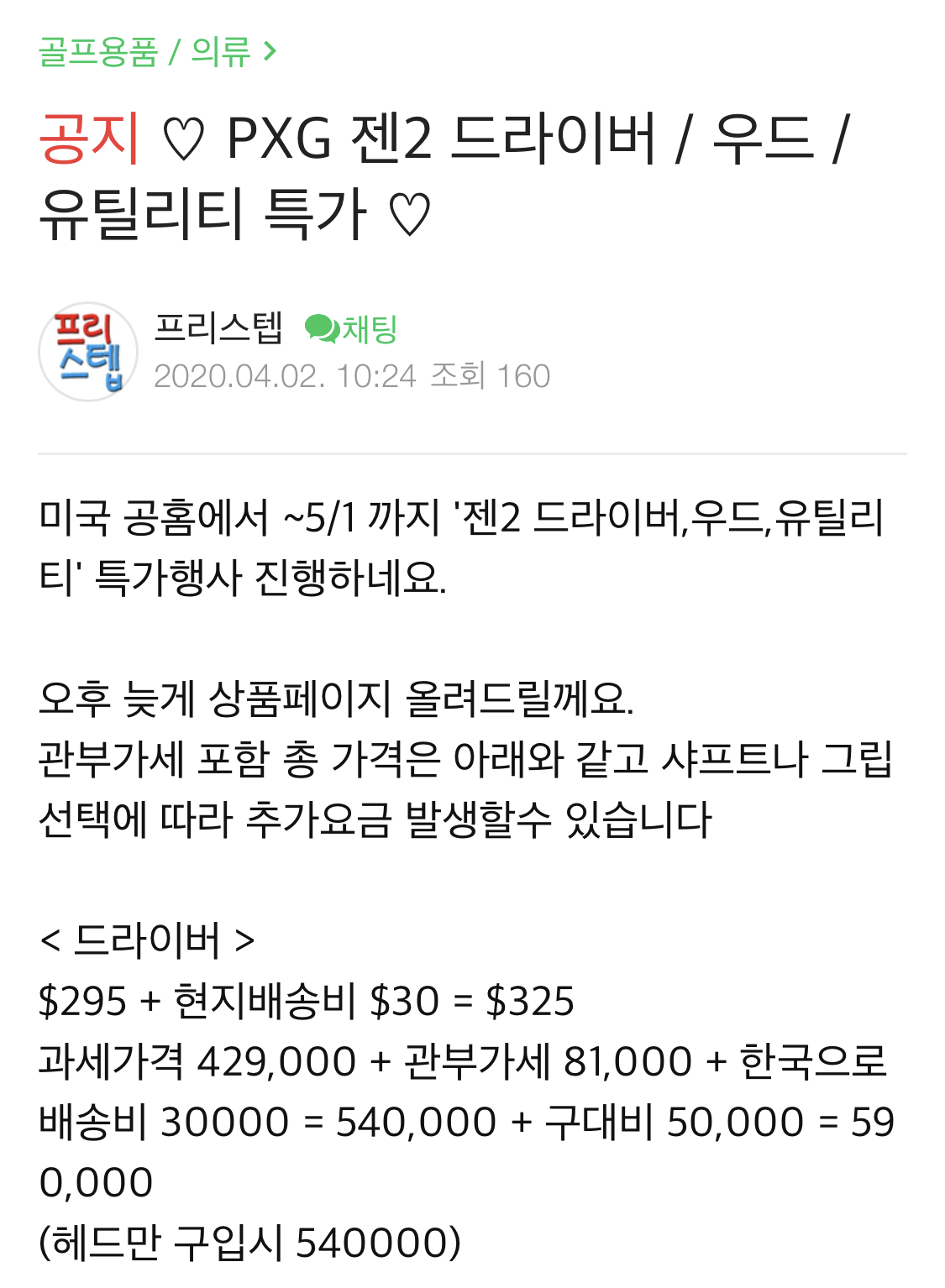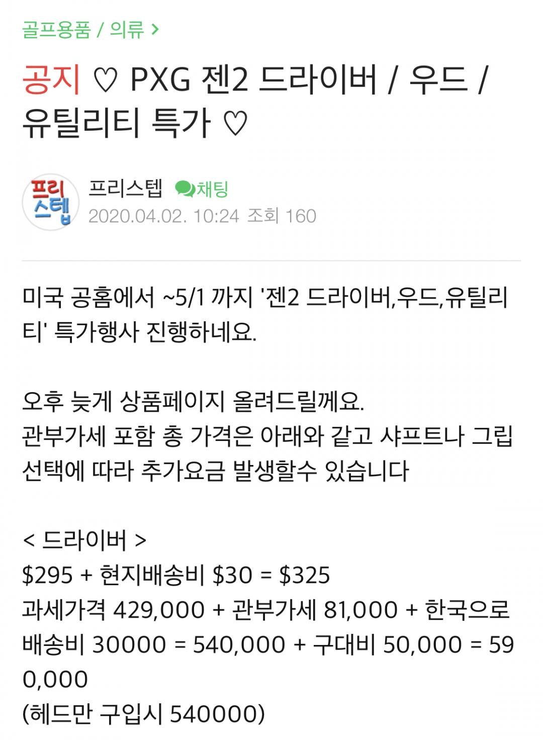 뜬금없이 pxg 구매대행 글이 올라왔네요...