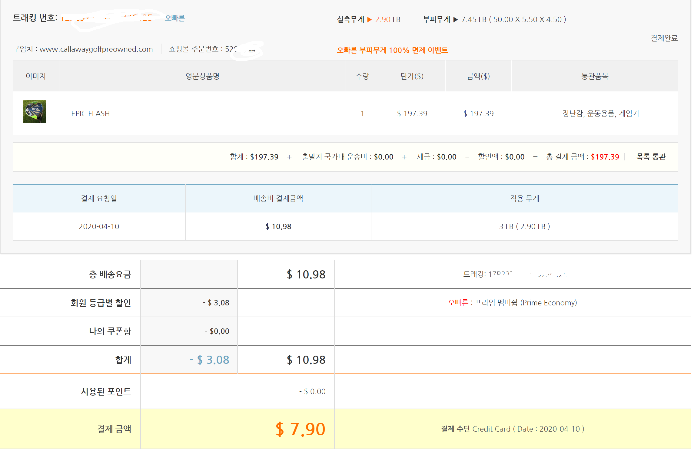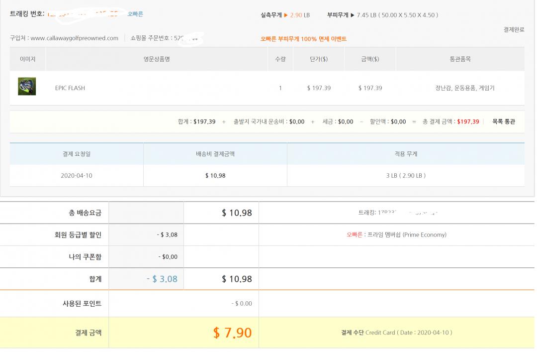 배대지 비용 공유 (협력사 에픽 플래시) 7.9달러 > 골프포럼