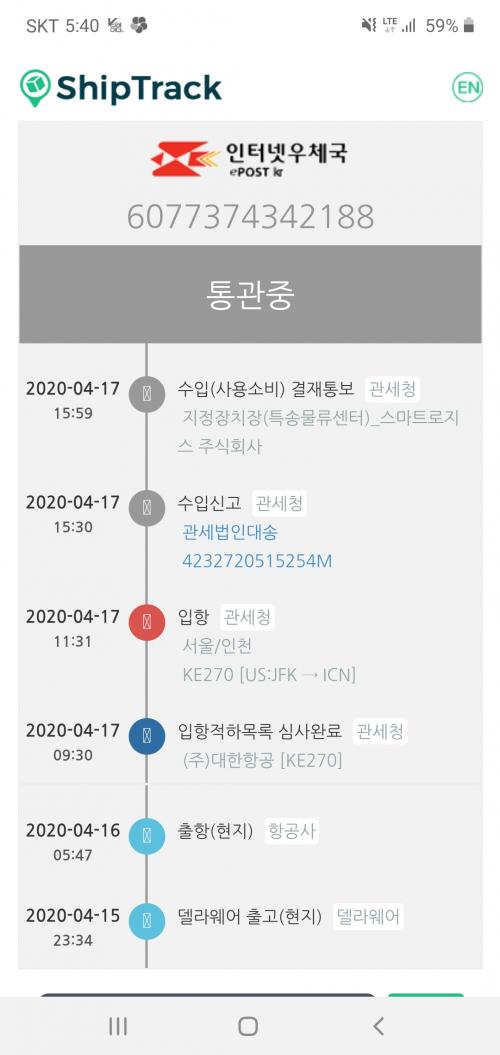 아뇨 . 지금 저 상태면 안옵니다.빠르면 담주 화요일 정도 되겠네요 | ||
