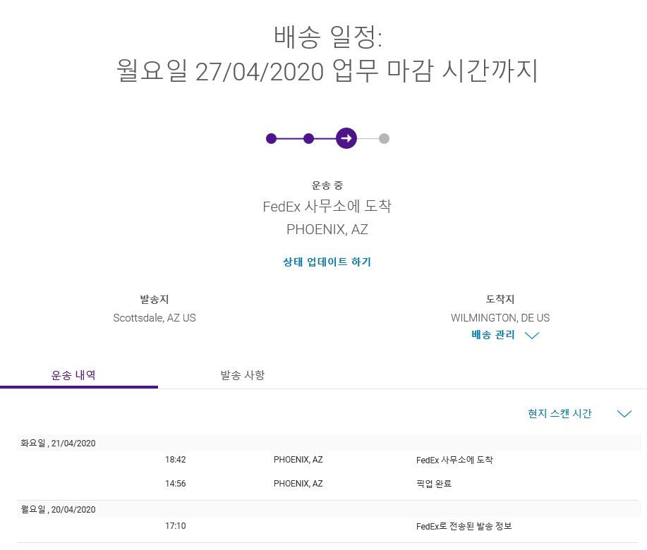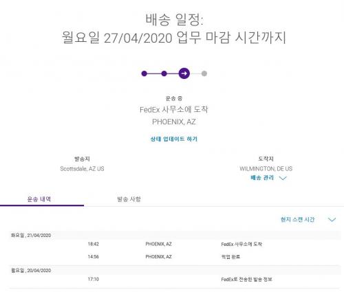 페덱스 배송일정 : 델라웨어 시간 기준 4월27일날 도착 | ||