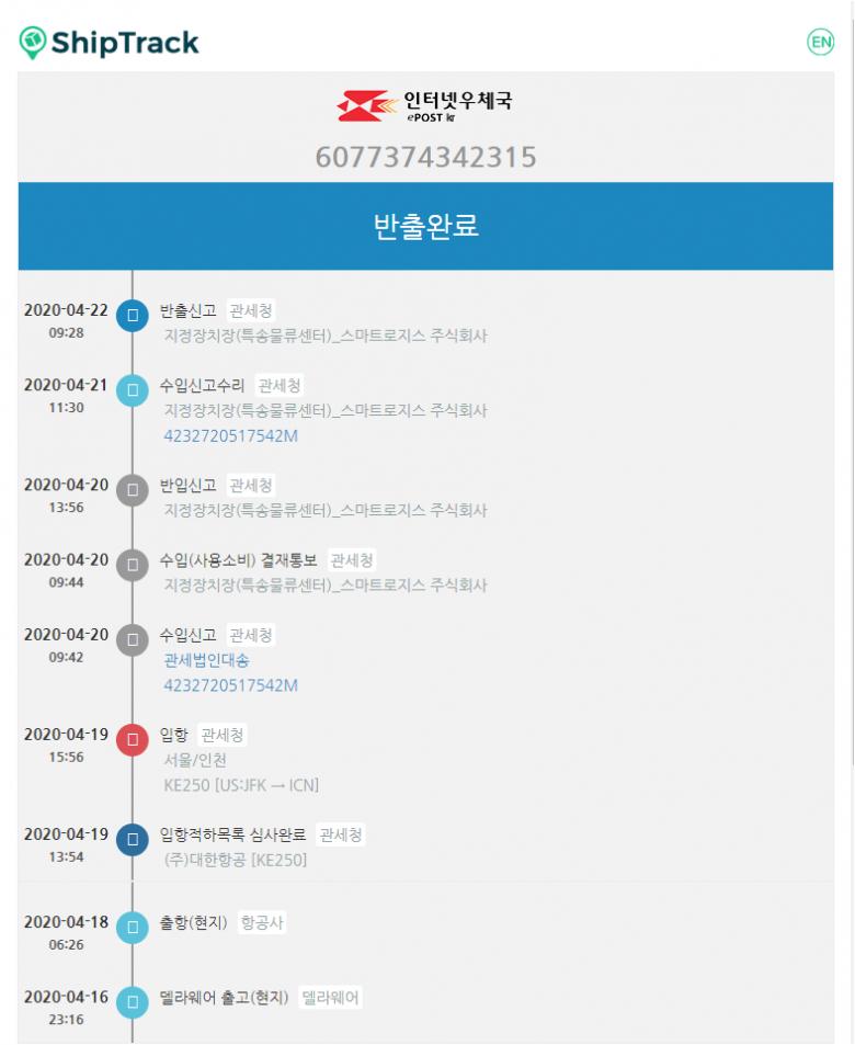 저는 4월 12일날 입항 된 에픽플래쉬가 아직도 통관중입니다.