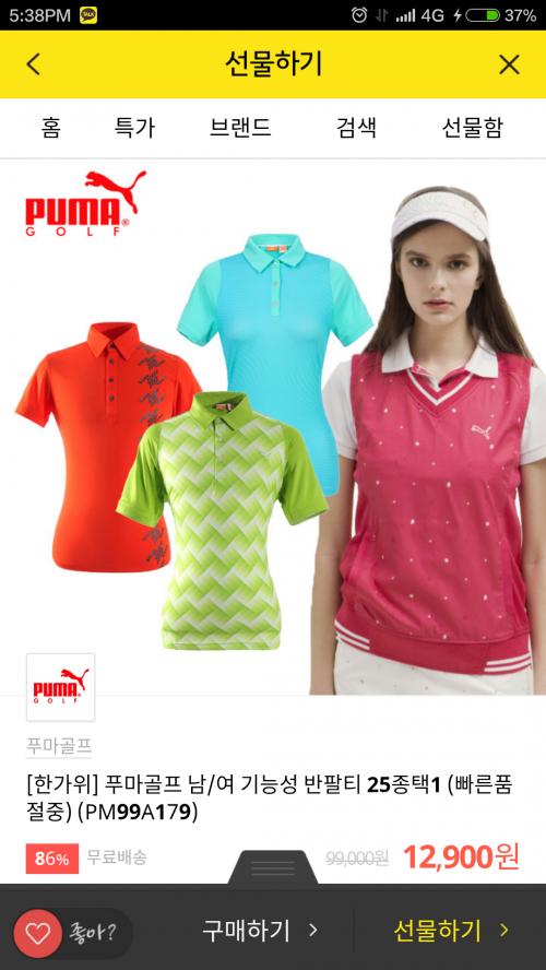 카카오톡 -> 더보기 -> 선물하기 -> 검색 -> "푸마골프"로 검색하면 가장 첫 제품들 입니다.