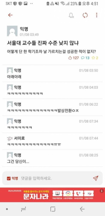 서울대 에타에 올라온 글인데, 역시 배운 학생들은 다르더라구요.