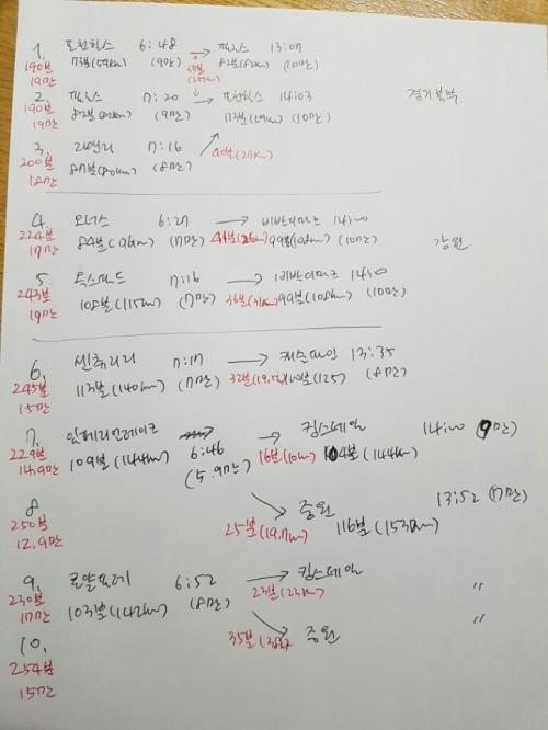 이동거리랑 그린피를 감안한 안을 몇개 만들어봤네요.