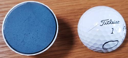 4.절단 후 비교: 우레탄 있는 부분이 사진상에는 구분하기 어렵지만 누렇게 변색됨(오래됐거나 물에빠진 볼)