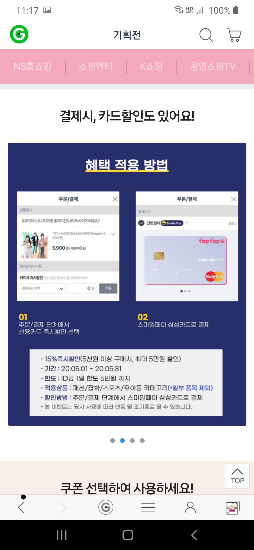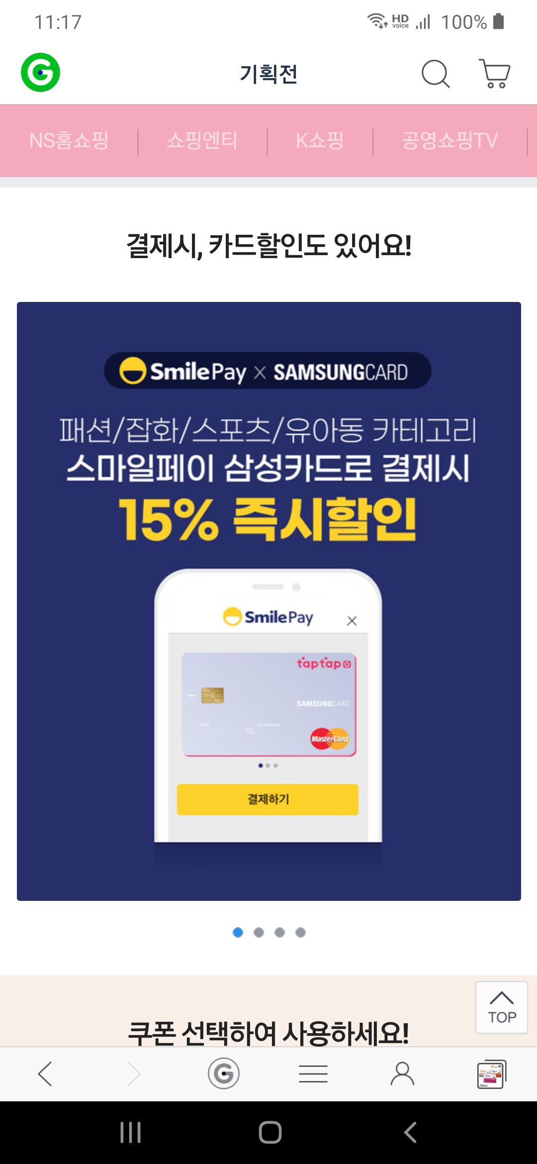 홈쇼핑 할인쿠폰 페이지에 있어요