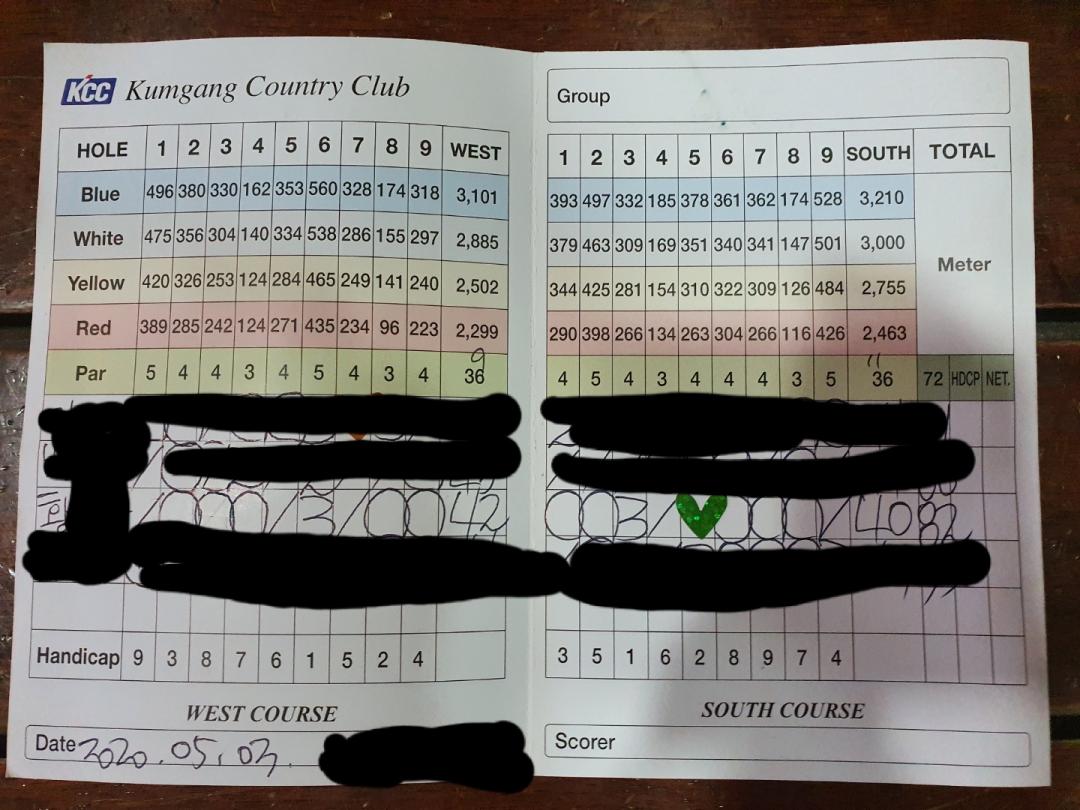 스코어 보시면 아시겠지만 OB2방 (티샷도 아니고 너무 길게 짤라가서 발생한 세컨OB와 유틸OB) 빼고는 거의 무결점 플레이를 했습니다.. OB 한방만 줄였어도 7자 보는건데 아쉬웠습니다..