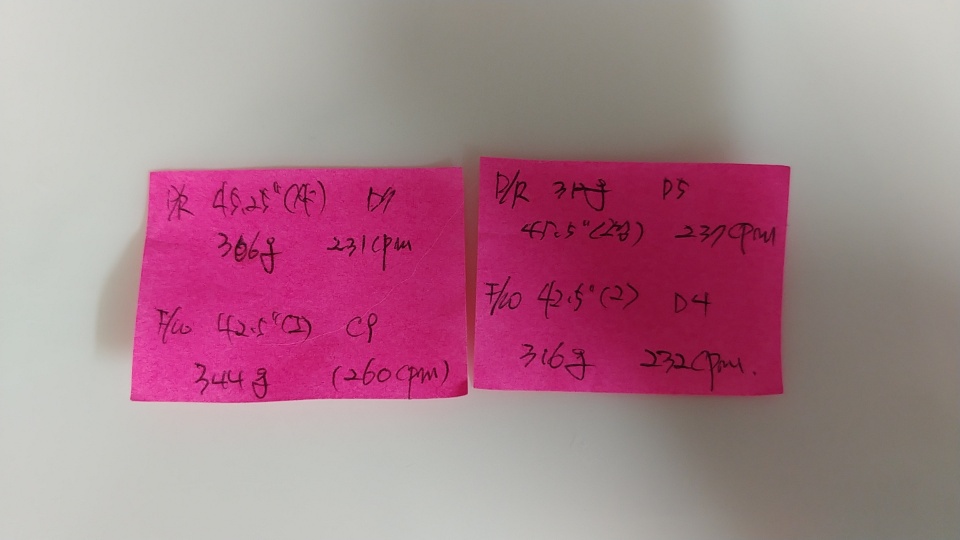 로디오 F-5 R 샤프트+윈그립 언더사이즈로 변경한 후의 측정값입니다.