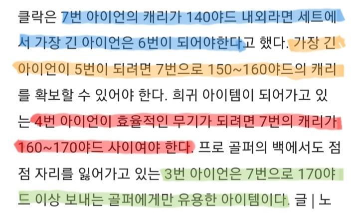 드라이버 190~200m, 7번 아이언 130m 정도 치고 있습니다.