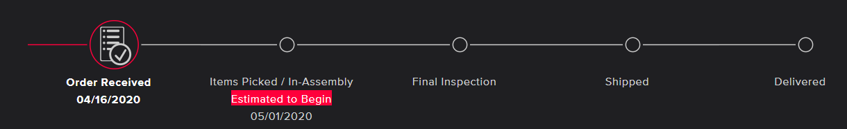 홈페이지에 나와있는 대로 5월 1일 Assembly 예상된다는 내용과 달리, Backorder라며 6월은 되어야 조립된다는군요.