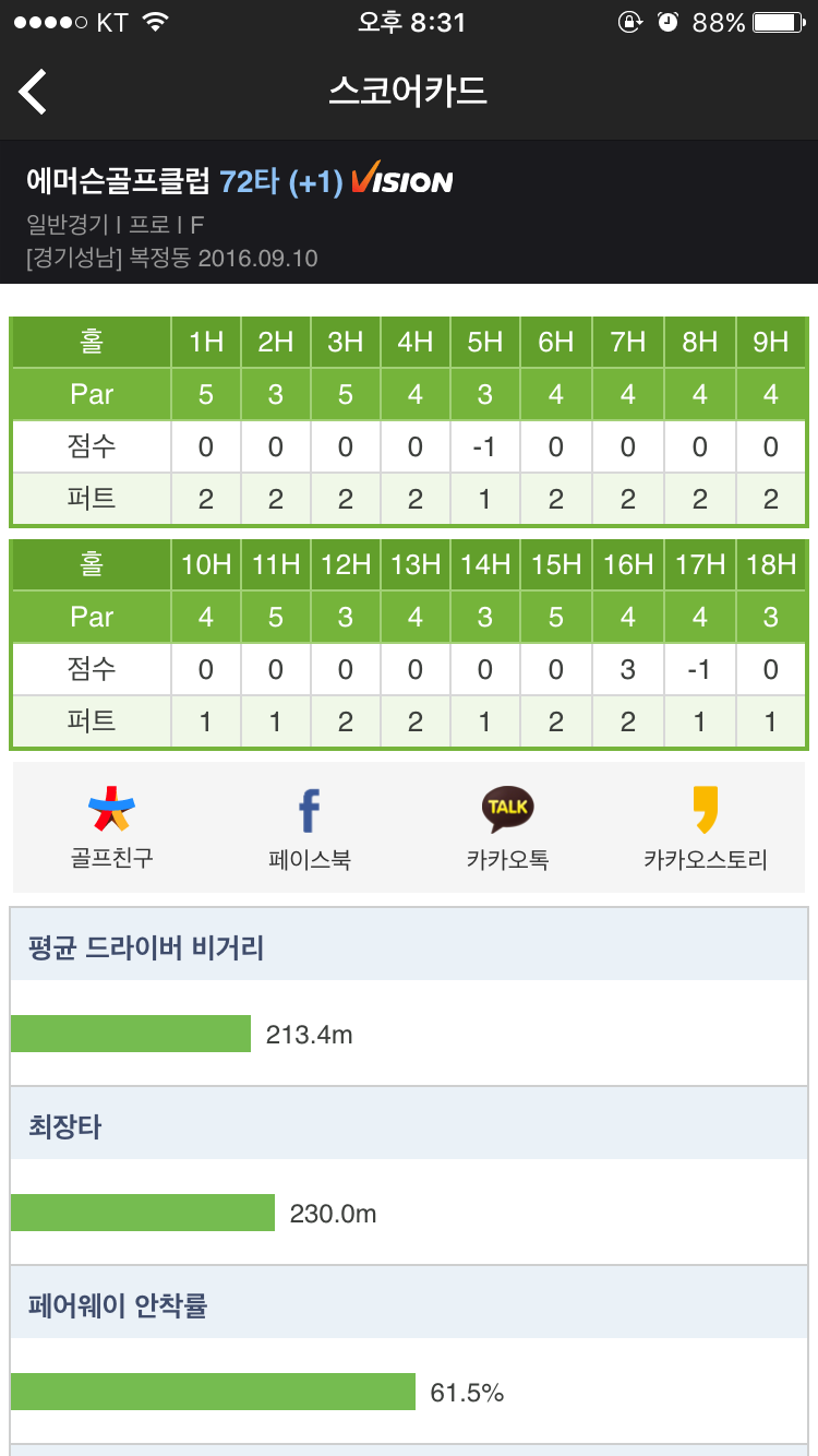 평균퍼팅이 1.7회... 거의 2온 2펏 공략...