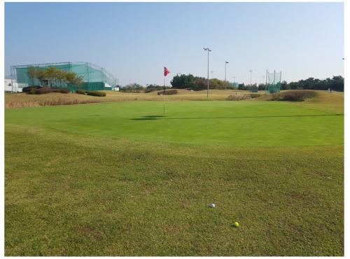 그린 상태 휼륭하구요 홀컵이 정규 구장에 비해 좀 작습니다.