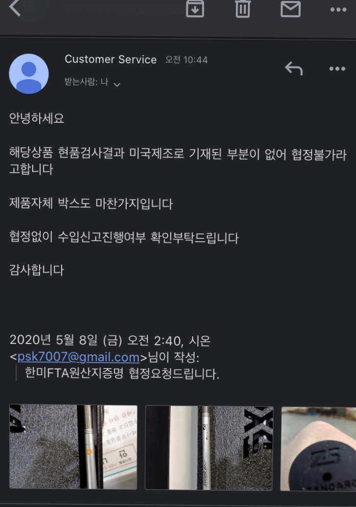 문의도 안하고 현품검사 실시하고 관세까지 나왔네요