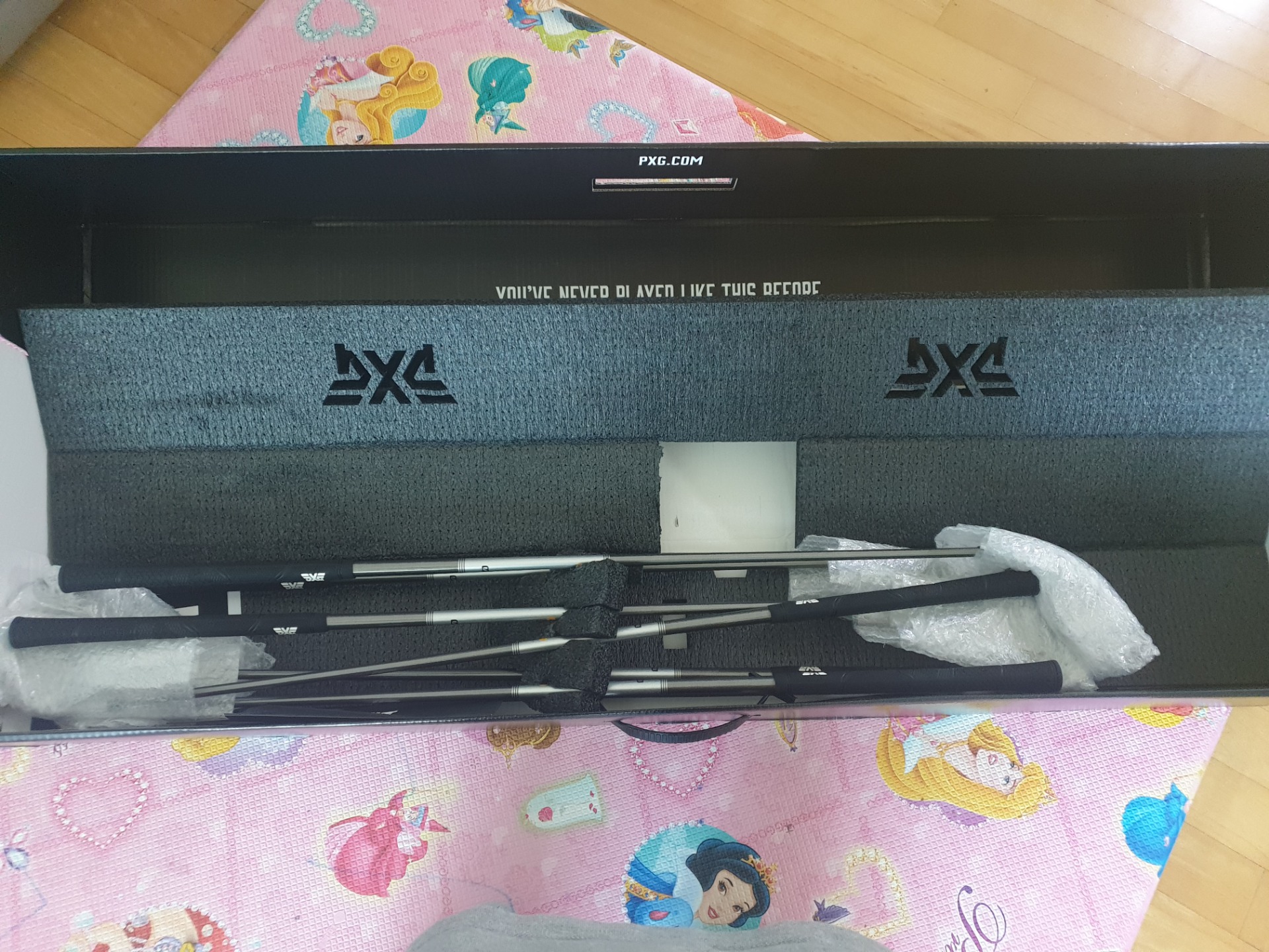 사진을 보니 PXG에서 진한 회색 비닐 포장해서 보낸게 맞습니다. 배대지에서 비닐까지 벗겨서 같은 비닐로 재포장하기 힘들죠! PXG에서 아이언 박스가 아닌 드라이버 박스로 보내면서 헤드쪽 스펀지가 없으니 뽁뽁이로 감싸서 보낸거네요. 드라이버 박스는 박스 양끝에 스펀지가 있을 필요가 없는 박스죠. | ||