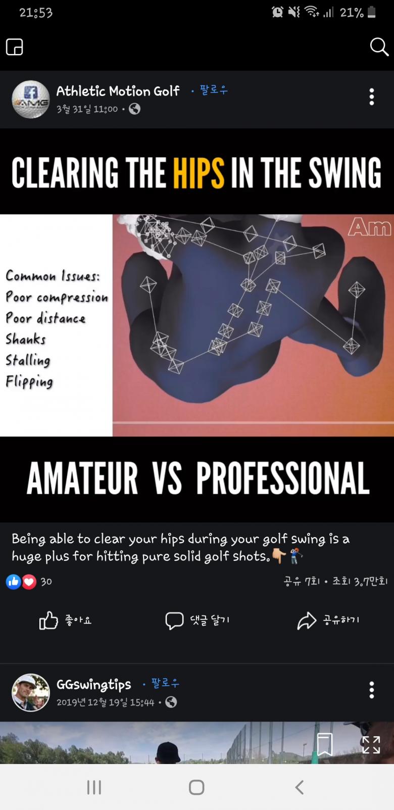 이거저거 보다가 링크에있는 영상을 봤는데 신기하네요. 우상단에 Am이 써있는게 아마, pro가 써있는게 프로입니다. 프로는 오른쪽 골반이 크게 회전하고 왼골반은 거의 앞으로만 조금 나가는 반면, 아마는 왼골반이 크게 회전하고 오른 골반은 뒤로 조금 물러서는 정반대모습이네요.