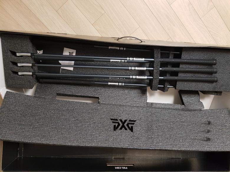 저는 아이언세트 무검수로 받았는데요. 아래 사진과 같은 박스에 비닐로 정교하게 랩핑되어서 왔습니다. 이게 pxg에서 보낸 원박스의 정석이라 봅니다. |
