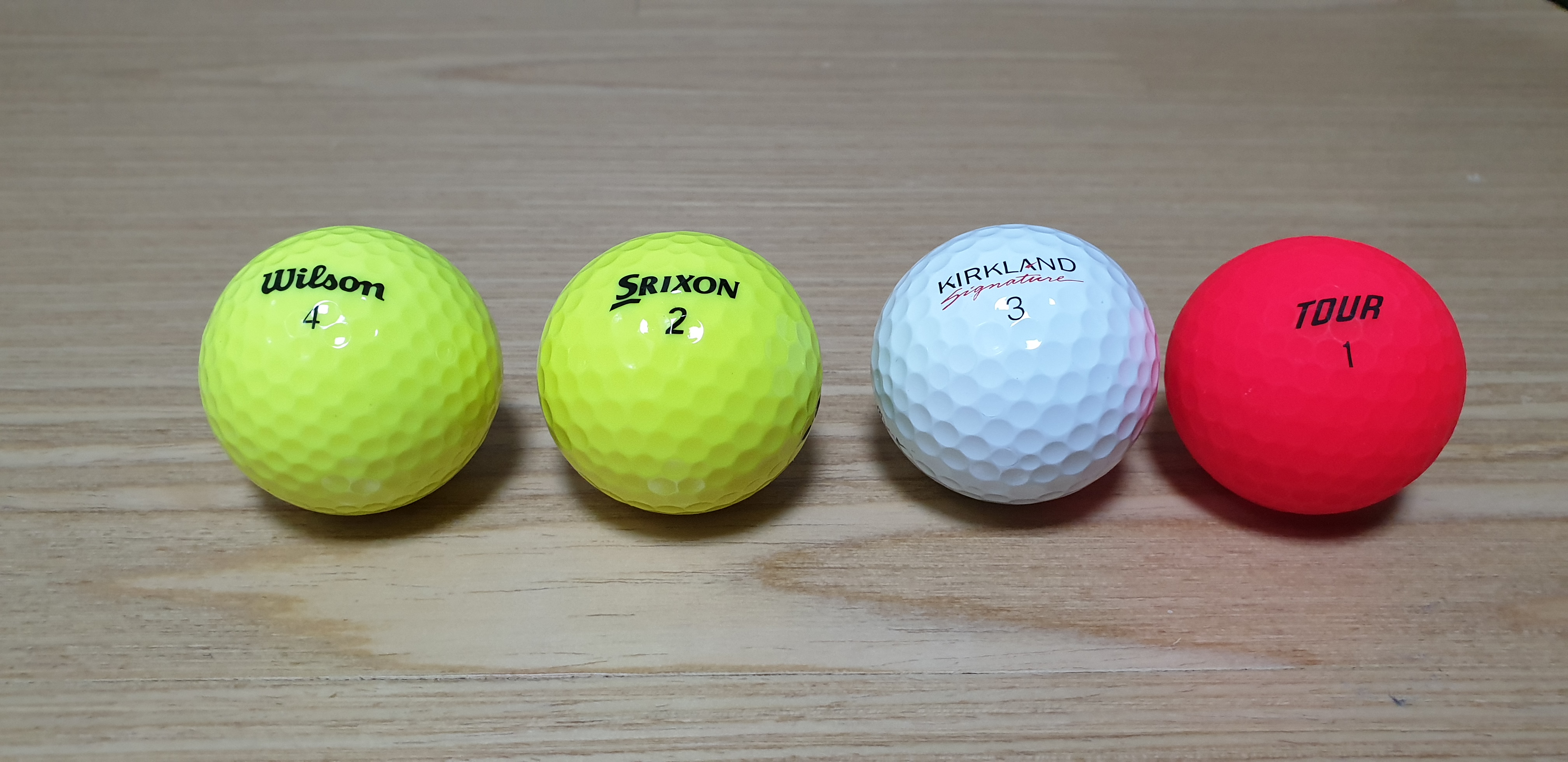 색깔이 노랑, 주황, 빨강의 무광 3색으로 가끔 하나씩 가지고 가서 티샷용으로 쳐봅니다.