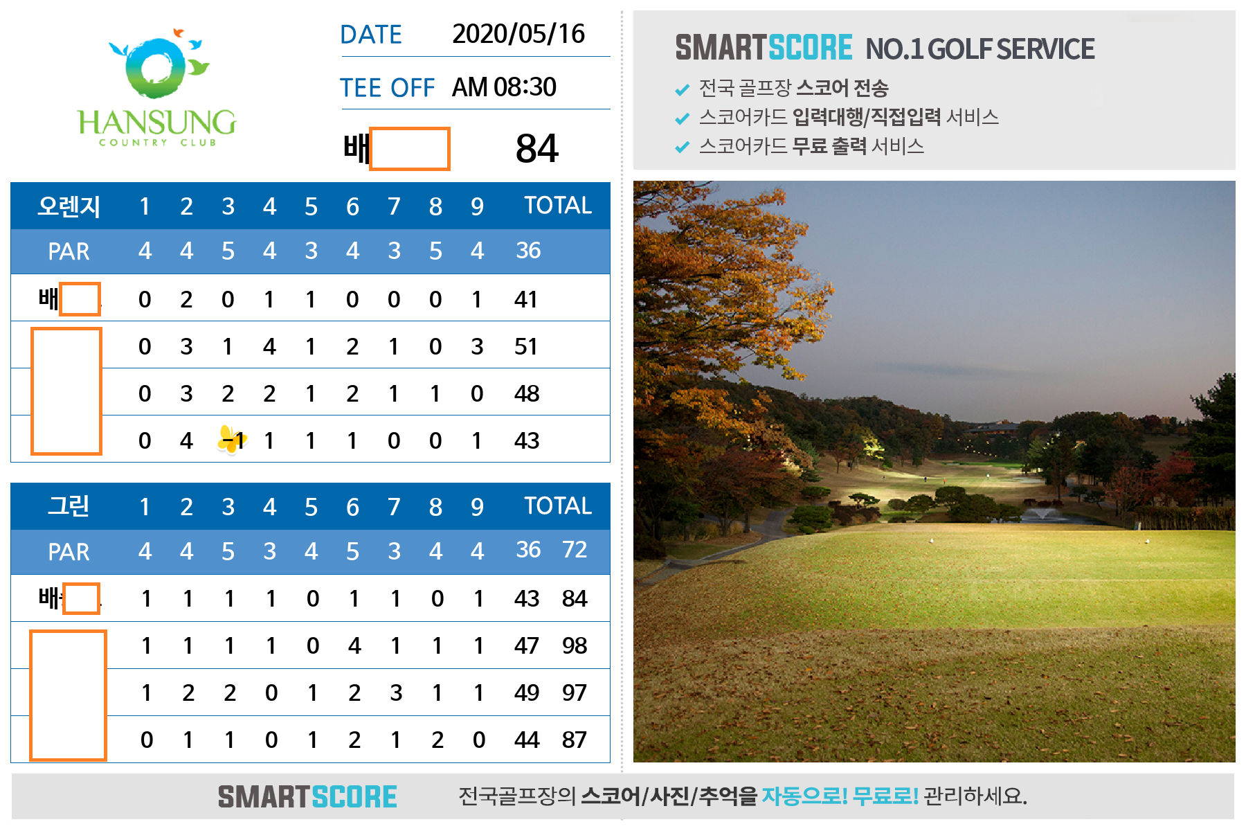 이래저래 괜찮았지만 결정적인 버디 하나가 없는 ㅠㅠ 무미건조한 스코어 카드가 조금 아쉽습니다.