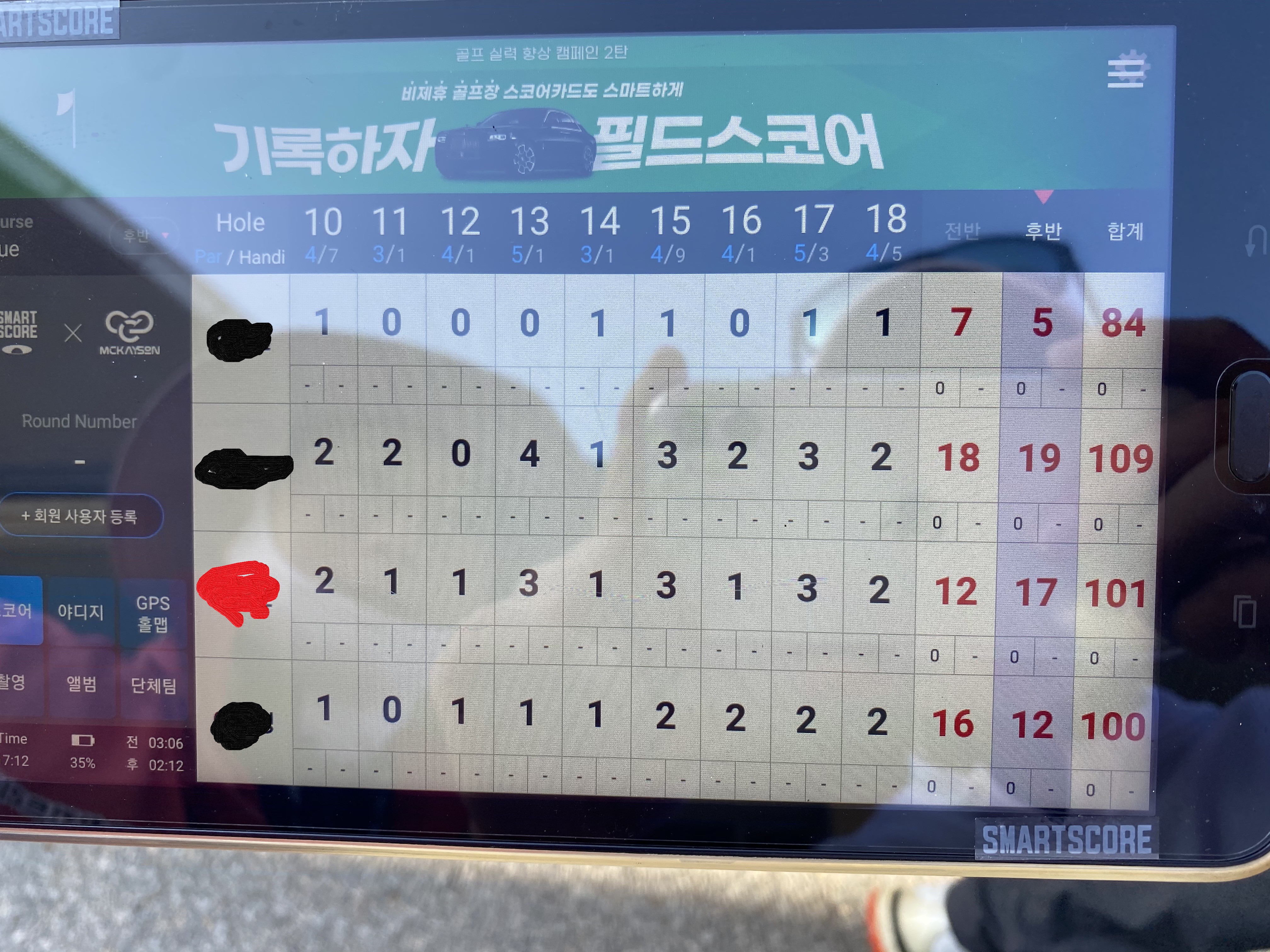 그래도 멀리건없이 스코어 바로 적고 트러블샷도 해보면서 101를 쳤다는것에 만족합니다 ㅎㅎ