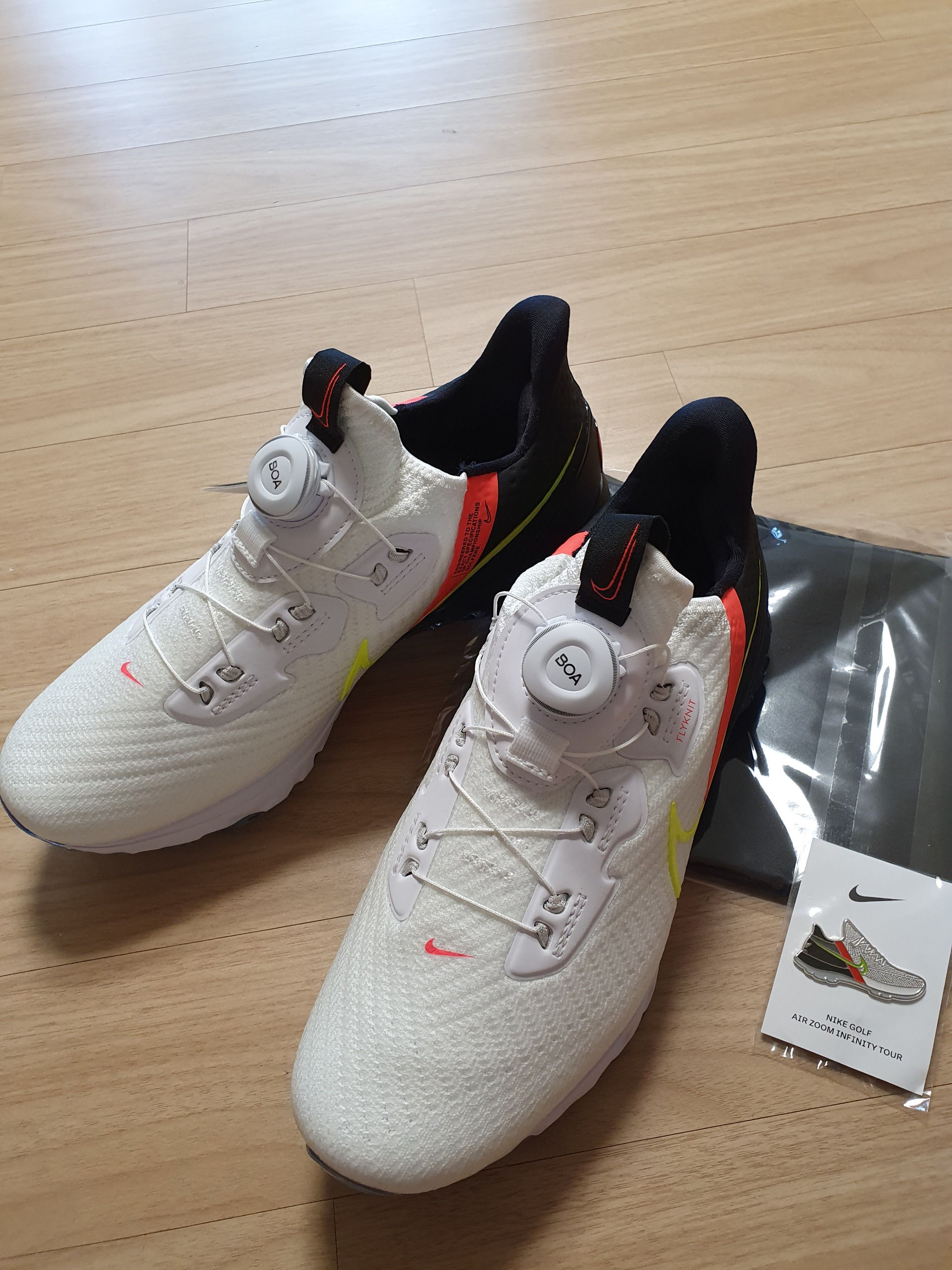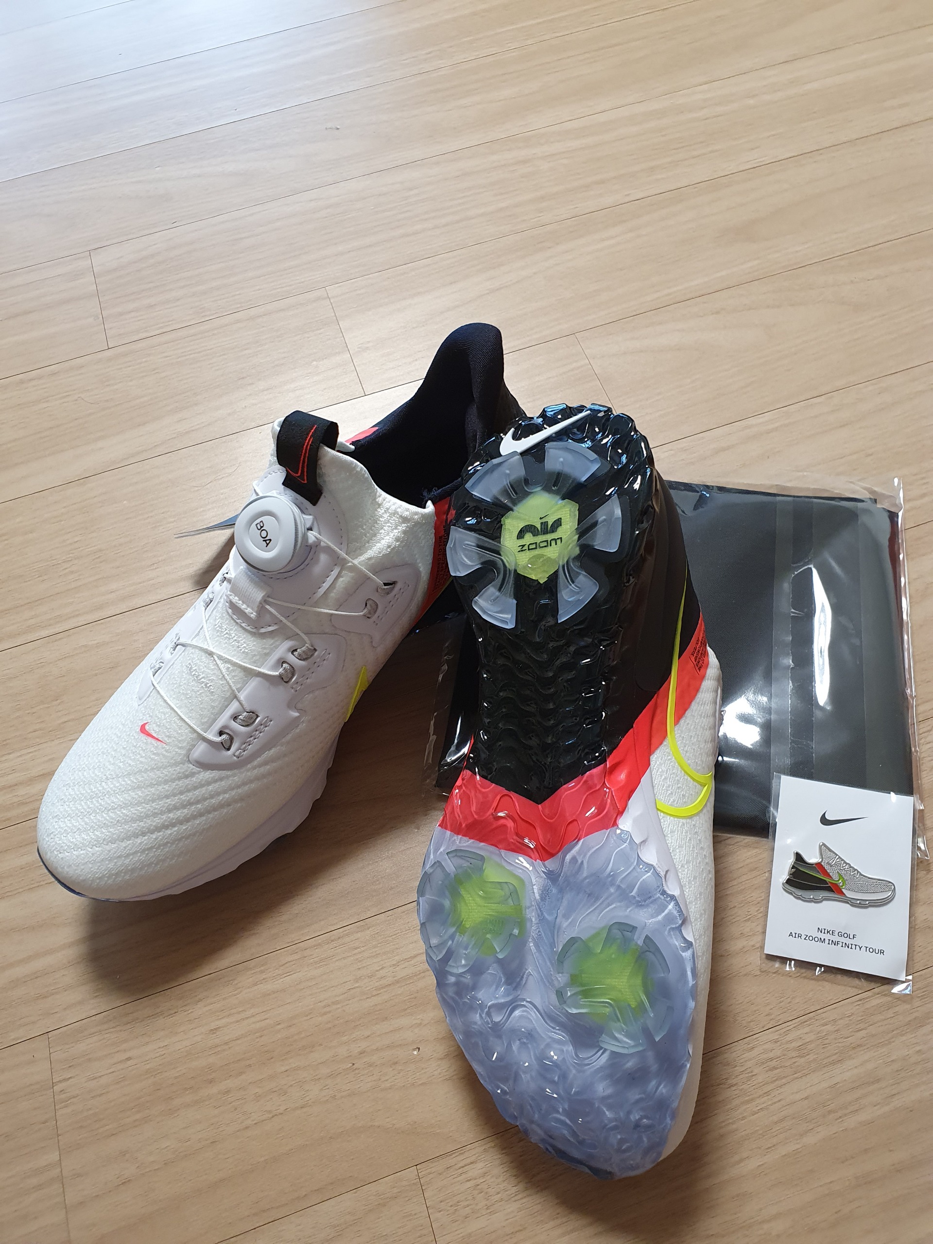 첫번째 신발은 나이키 투어 프리미어였는데, 조이는 부분이 망가져서 환불 받고, 그 후에 에어맥스 97 실버불렛으로 필드갈때도 신고 일상 생활에서도 매일 신었더니 에어가 터진 것마냥 걸을때마다 바람빠지는 소리가 나더라구요. 그래서 어쩔수없이 하도 편하다는 후기가 많아서 또 샀네요. ㅎㅎㅎ