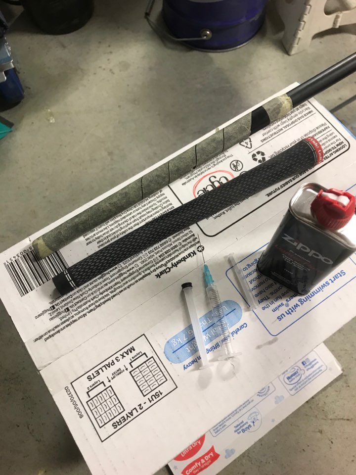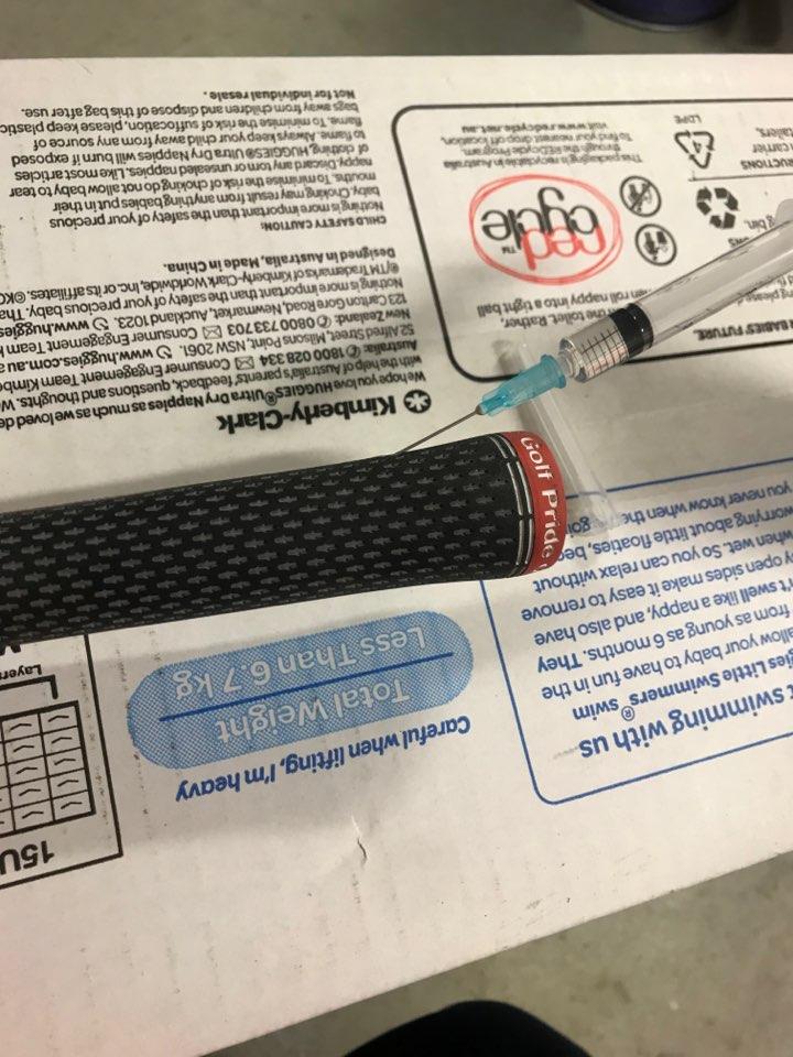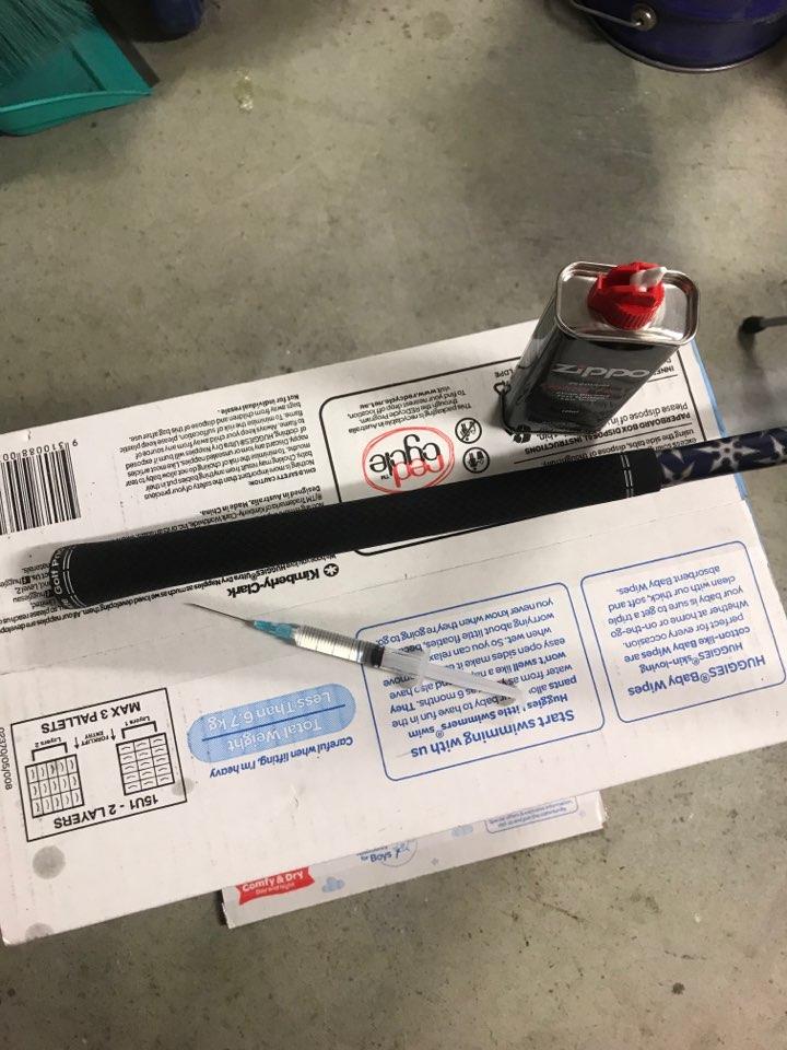 라이터오일을 주사하시고 주물럭주물럭해서 오일을 그립 안쪽에 최대한 퍼트리시고 그립을 쏙 당겨 빼세요