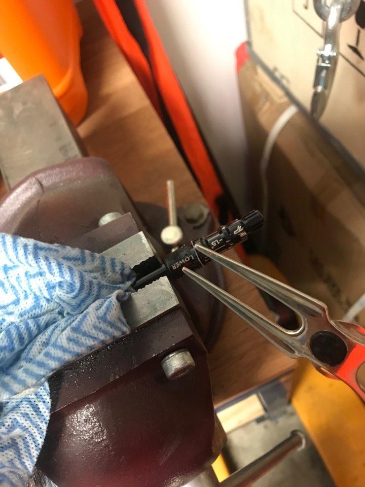 깊게 찌르지마시고 살짝 찔러서 아주 조금 밀어 넣은 다음에(샤프트에 상처가 생깁니다)