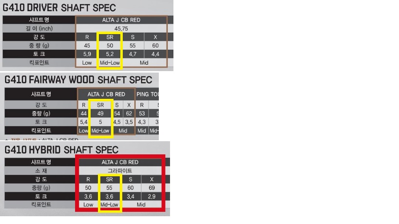 G410 ALTA SR 드라이버를 사용중인데, 샤프트 중량이 50g으로 나와있네요.