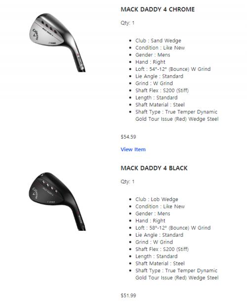 꺼린터라, 남아있는 바운스 12도로 깔맞춰 54도와 58도 Mack Daddy 4  Like New 로 질렀습니다.