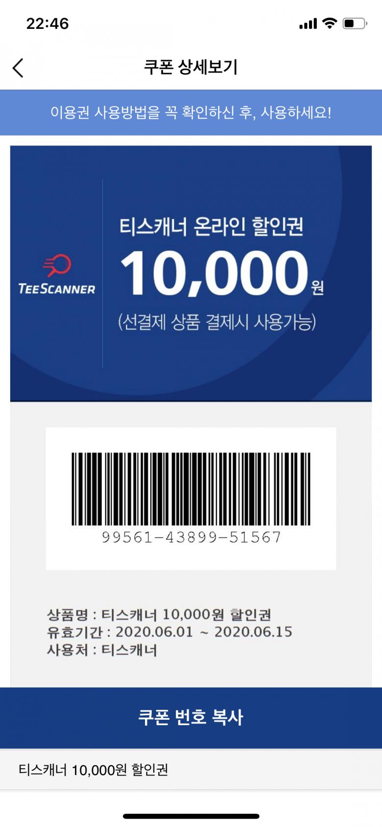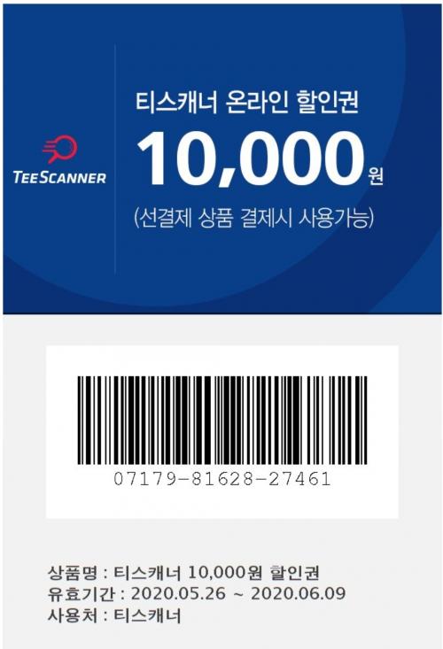 티스캐너 1만원 할인권입니다.6/9일까지