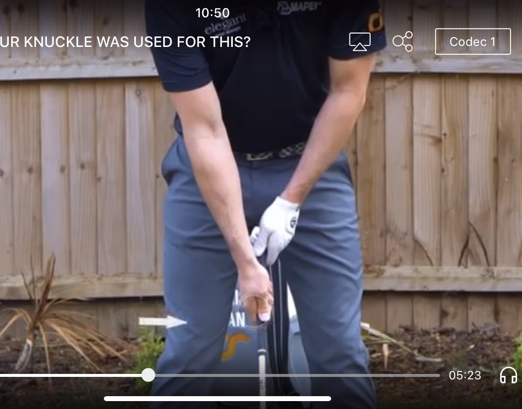 그립의 12시 방향을 엄지로 누르는 습관(도끼질, 망치질 감각)은 클럽페이스가 오픈된 상태를 유지하게 만듭니다. 나중에 스퀘어하게 돌아오면 되기야 하지만, 그 감각만으로 친다는 것은 결국 임팩트 근방에서는 오른손이 힘을 가하지 않고 매달려 있기만 하다는 뜻이겠죠.