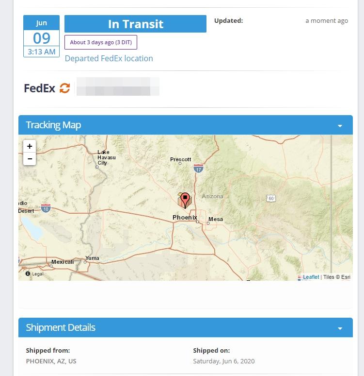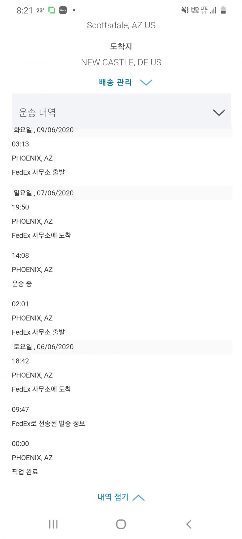 저도 마찬가집니다.피닉스에서 계속 멈춰있네요. 배송차에 무슨 사고가있는듯하네요. 불안하게... |