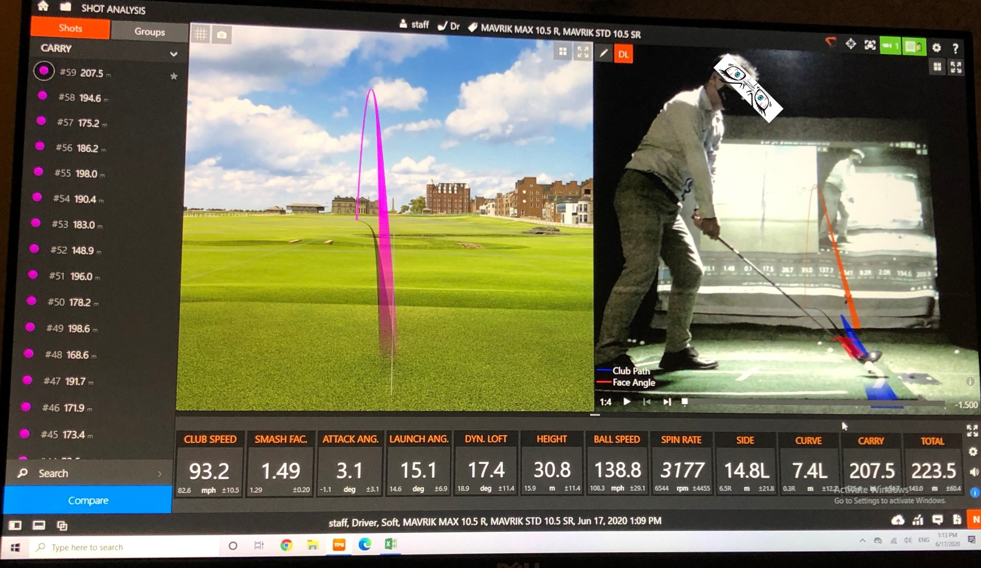 앞선 스윙의 경우 대략 93마일 정도의 스윙 스피드에 스매쉬팩터가 1.42 정도이던데 반해. XC6s는 스매쉬 팩터도 높고 캐리도 10미터 정도 차이 나는 군요.. 잡았을 때 느낌도 좋고..