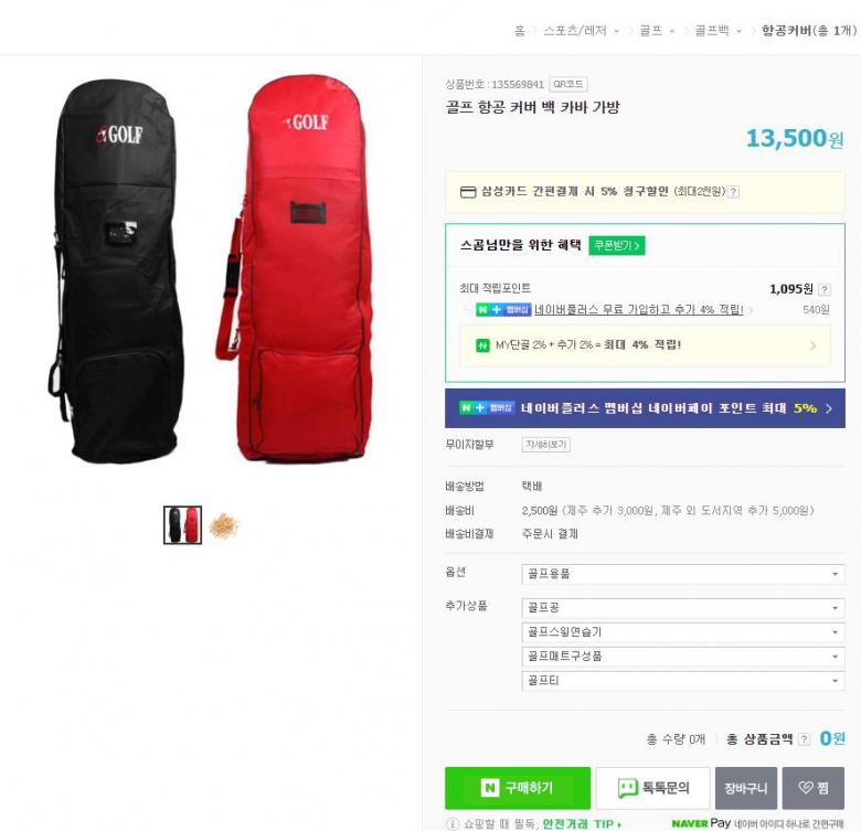 1만원대 바퀴달린 골프백 항공커버 구입하여