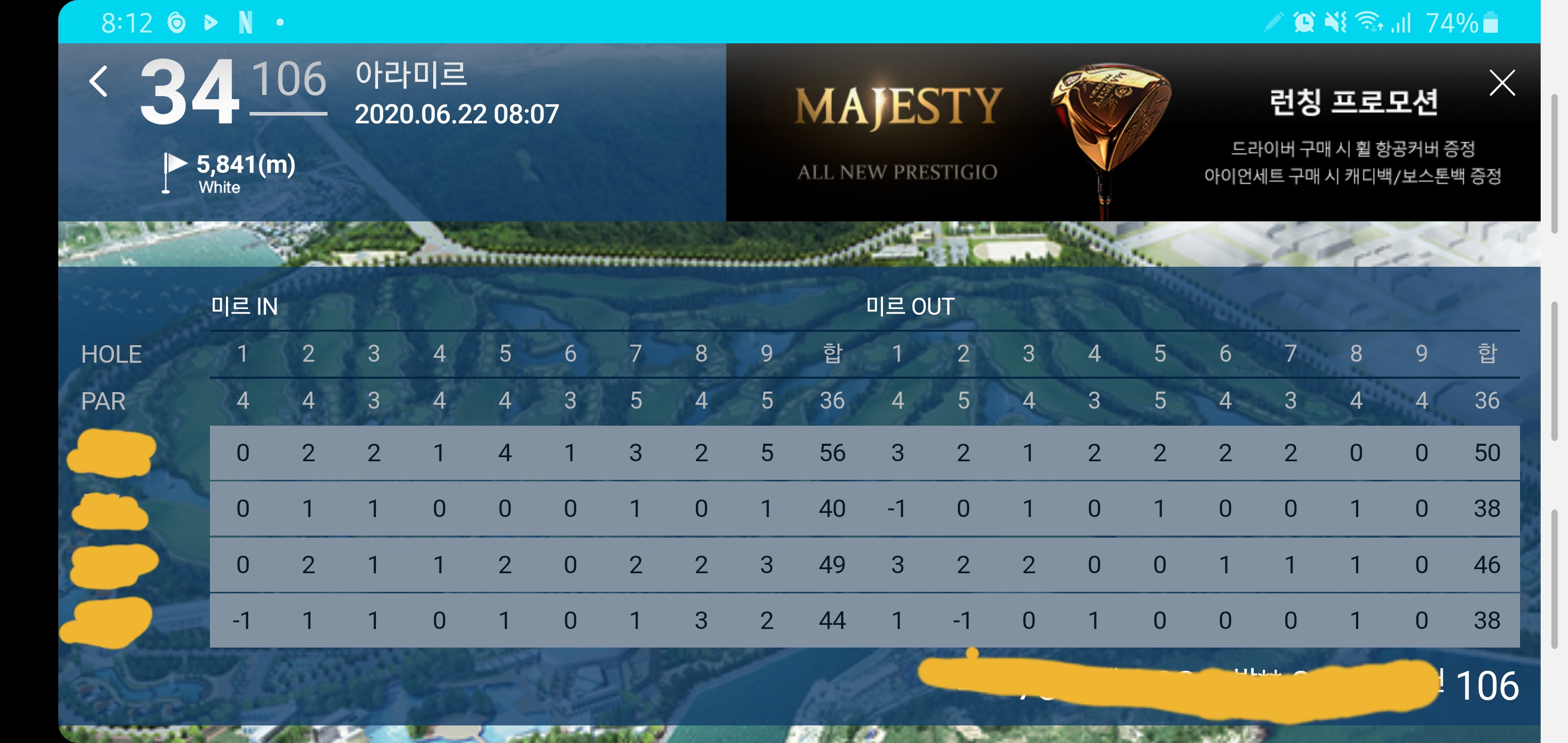 드라이버는 2번정도 오비로 갔었는데... 네 점수는 똑같아요.
