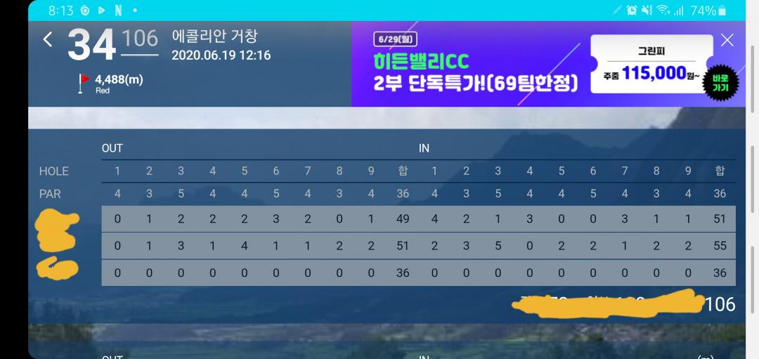 저도 상록CC에 두번연속 가서 둘다 106개 했습니다 ;;;