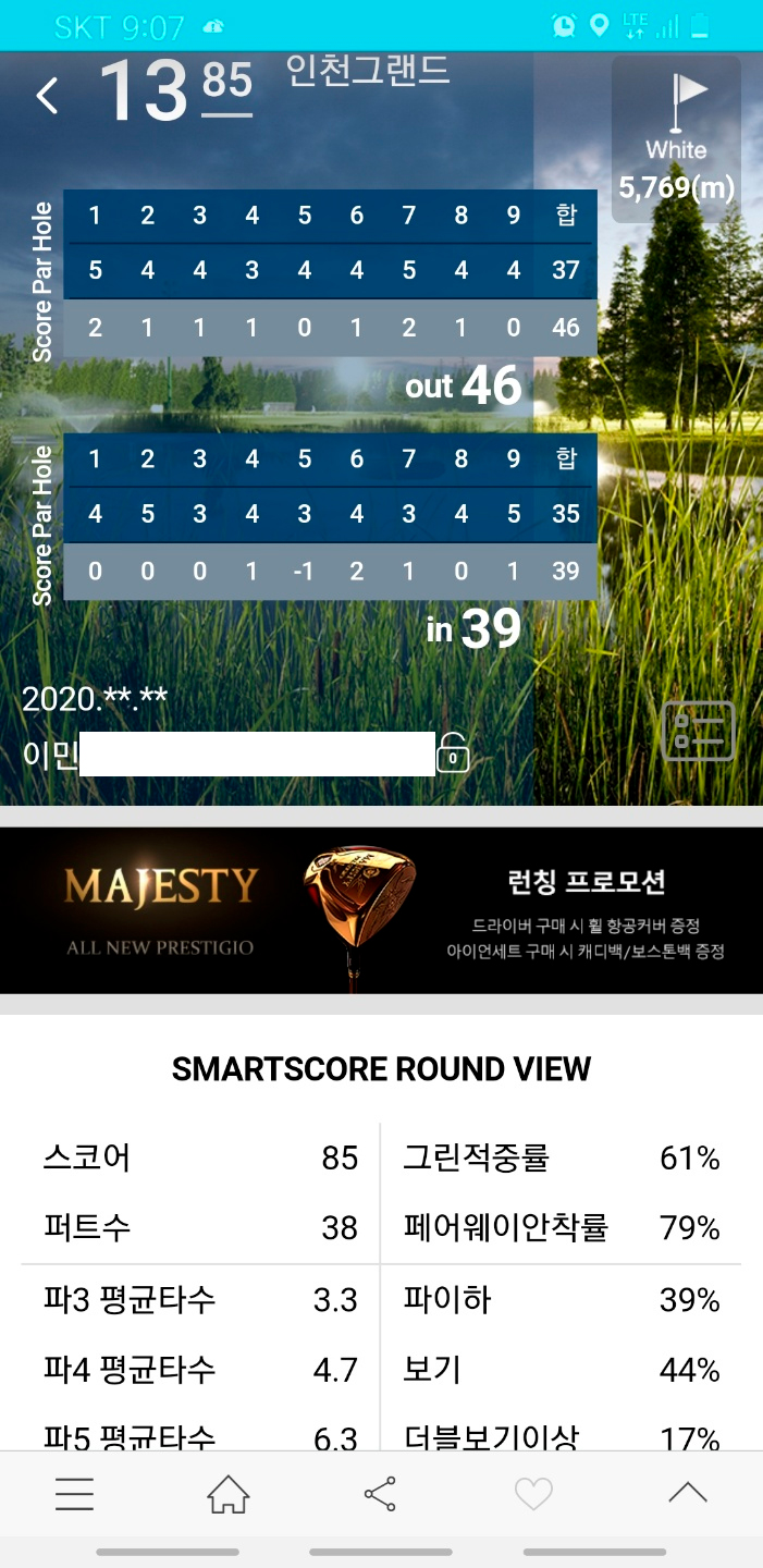 오늘 퍼팅 괜찮게하고 왔습니다. ㅎㅎ