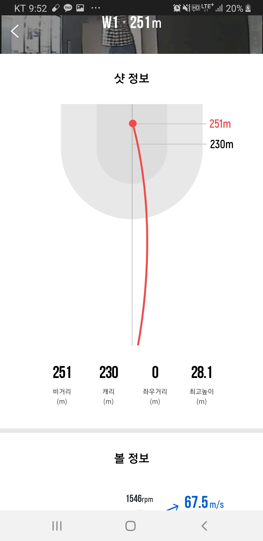 여기저기보면 샤프트가 더 강한걸 쓰는게 적당한게 아닌가 하는 글이 많아서요. 첨부사진처럼 늘 방향성이 좋은 골퍼는 아니고 (그나마 오늘 잘 간거 하나를 올렸습니다.) 좌우 사정없이 나갑니다 ㅜㅜ 주로 드로우나 훅인데. 악성 슬라이스는 없고 푸시슬라이스도 꽤.. ㅜ. 그리고 가끔 무시무시한 훅이 나옵니다.
