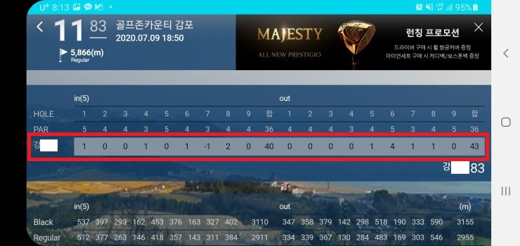 결론 : 숏게임만 잡으면 싱글 가능 기대합니다. ㅎㅎ