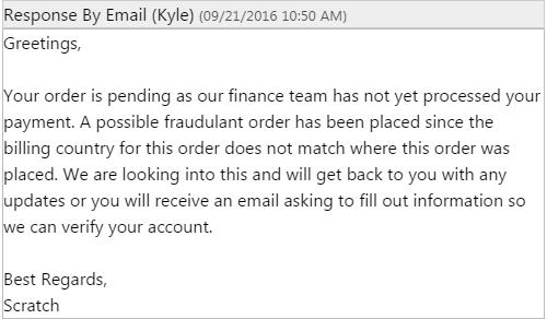 '왜 내 주문은 쉽핑이 안되냐'고 물었더니 아래와 같은 답변이 왔고