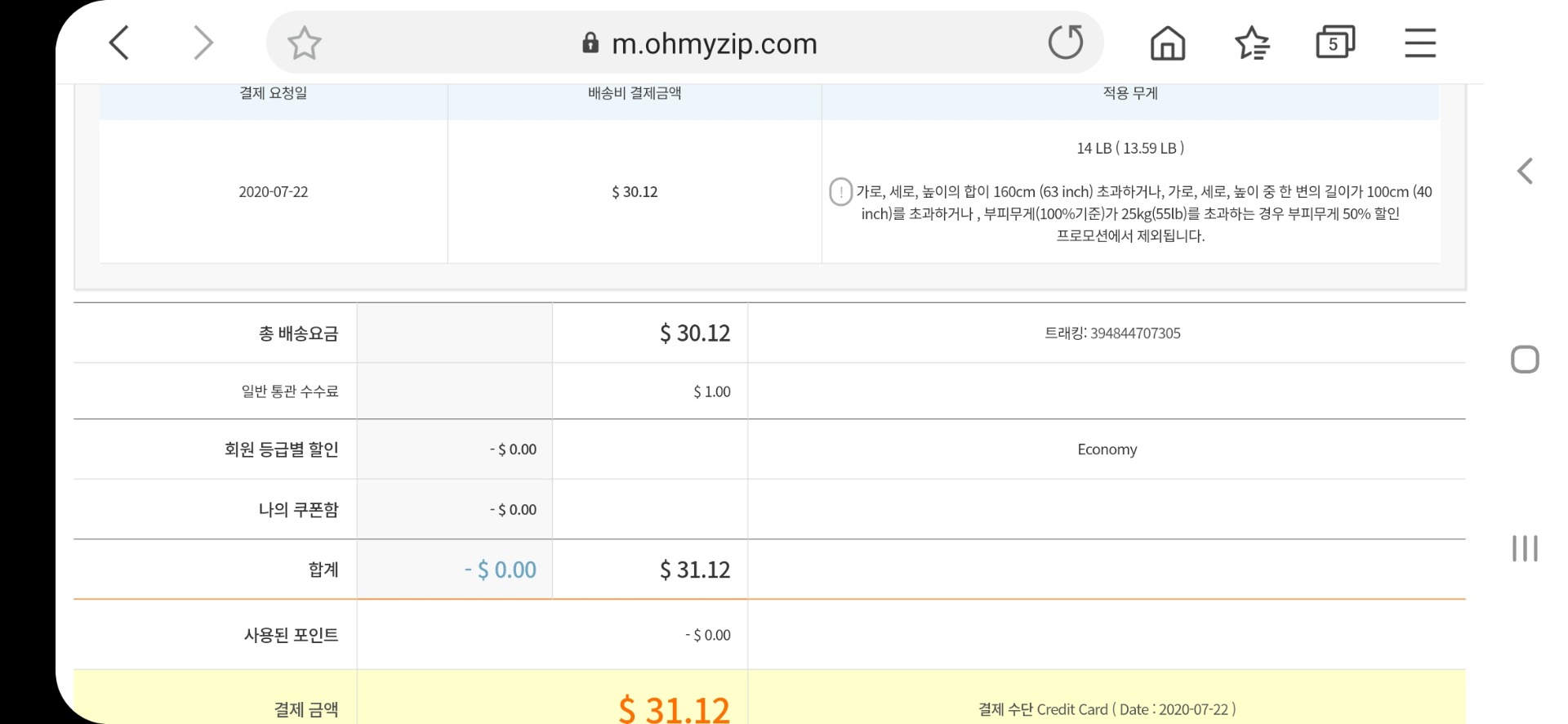 아니.. 아무리 부피무게 적용이지만 우드가 14파운드에 30달러가 되다니?