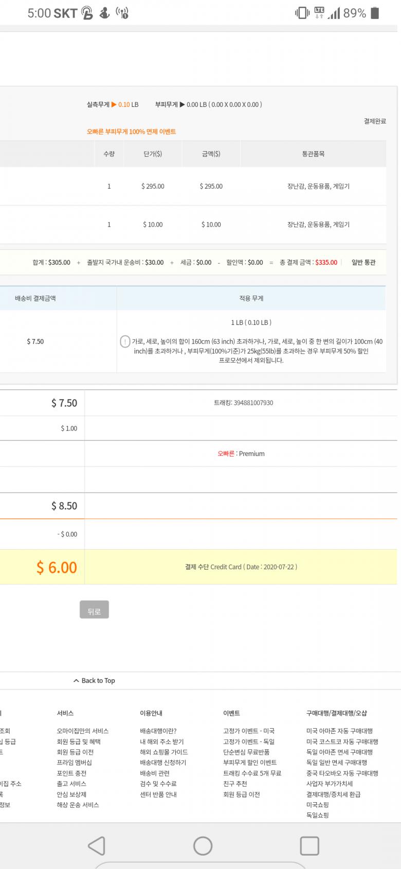 저는 주력으로 직구직구 쓰는데.. 같은 무게로 오내집이 대략 3달러이상 비용이 더 비싼거 같군요.