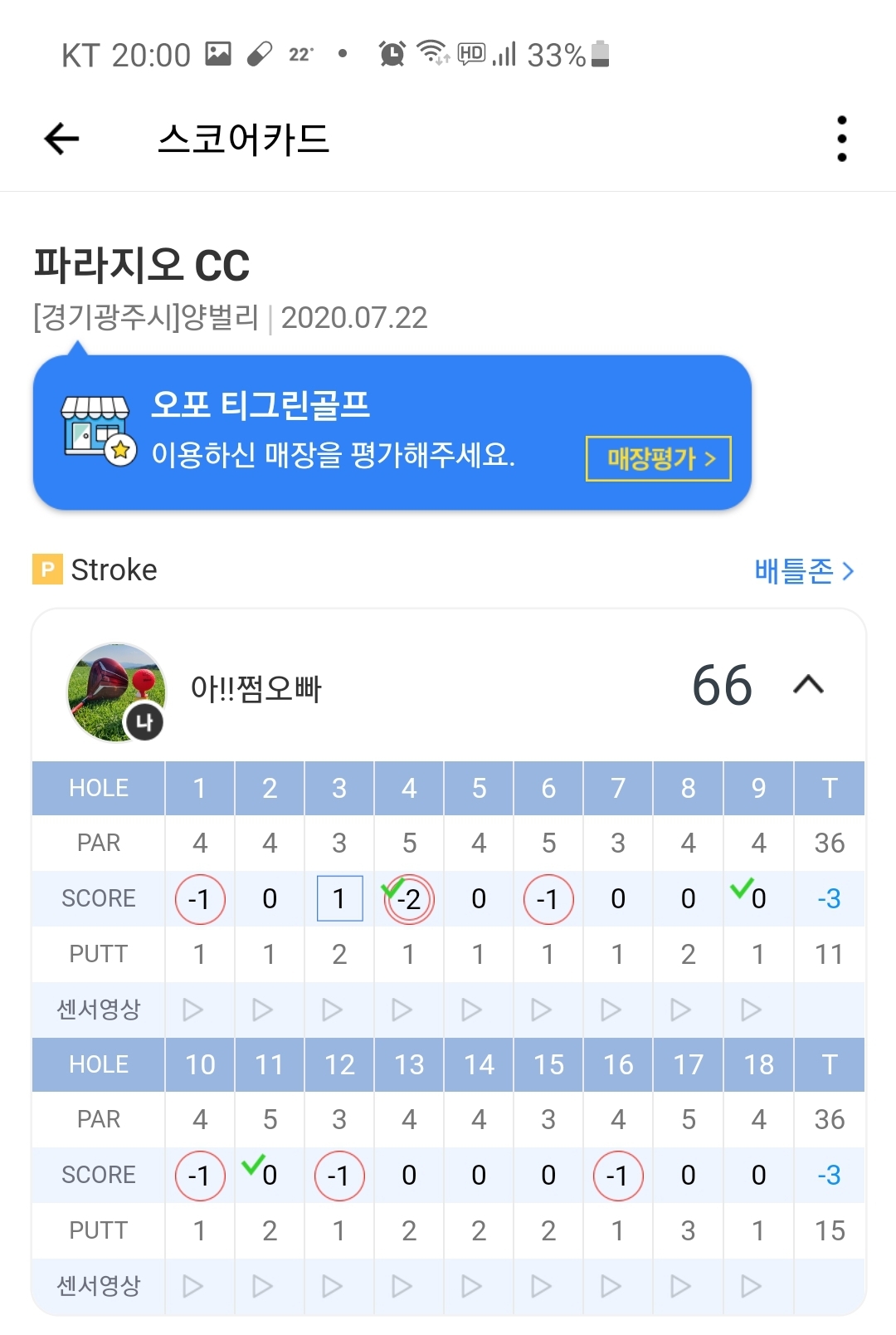 엄청나네요 ㅋㅋ 66타 부럽습니다