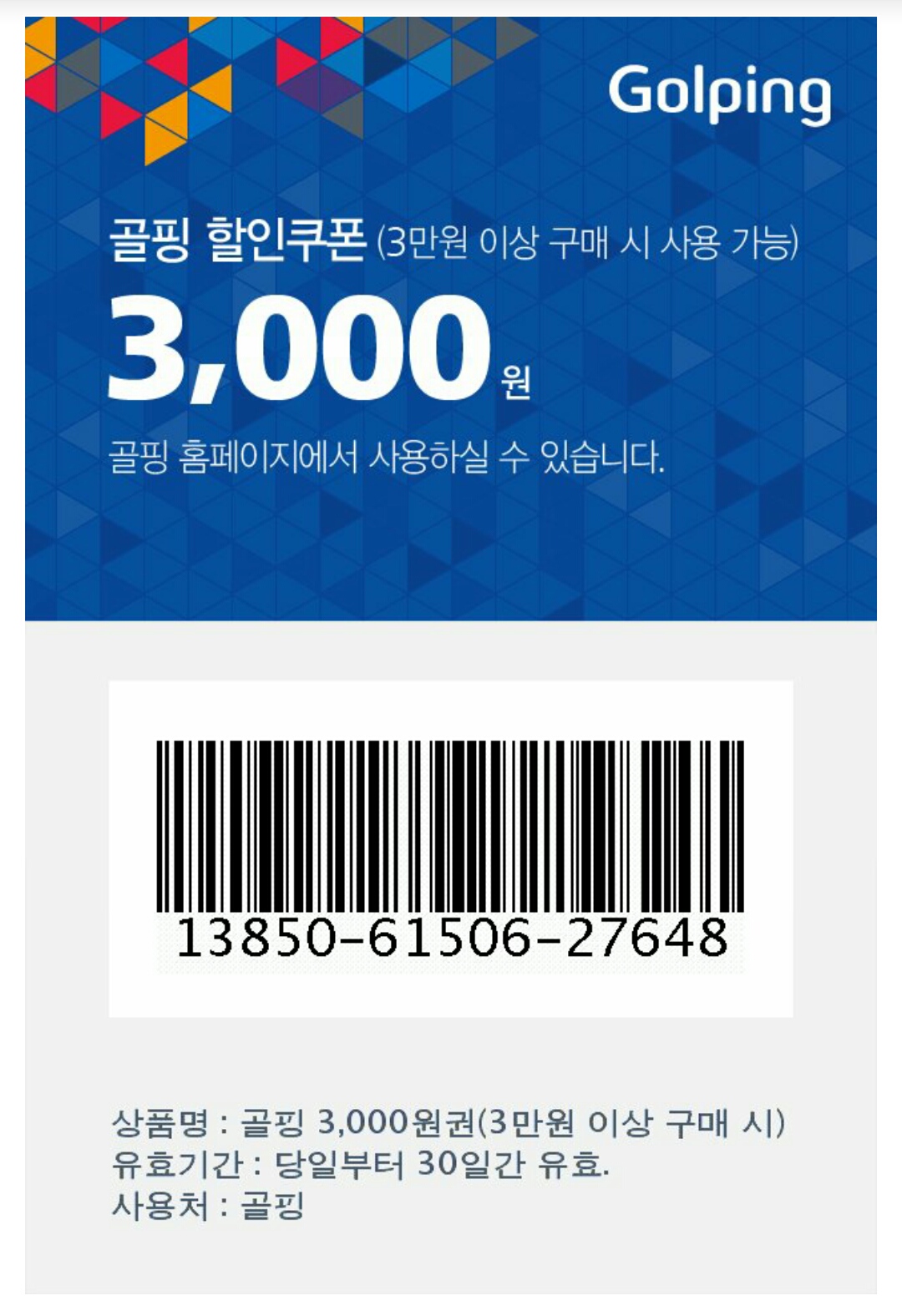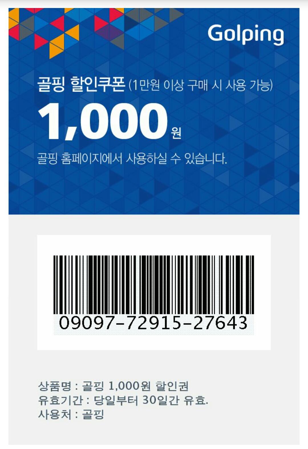 골핑에서 내정보에서 쿠폰 일련번호 입력하면 됩니다....읠슨스태프님 감사합니다. |