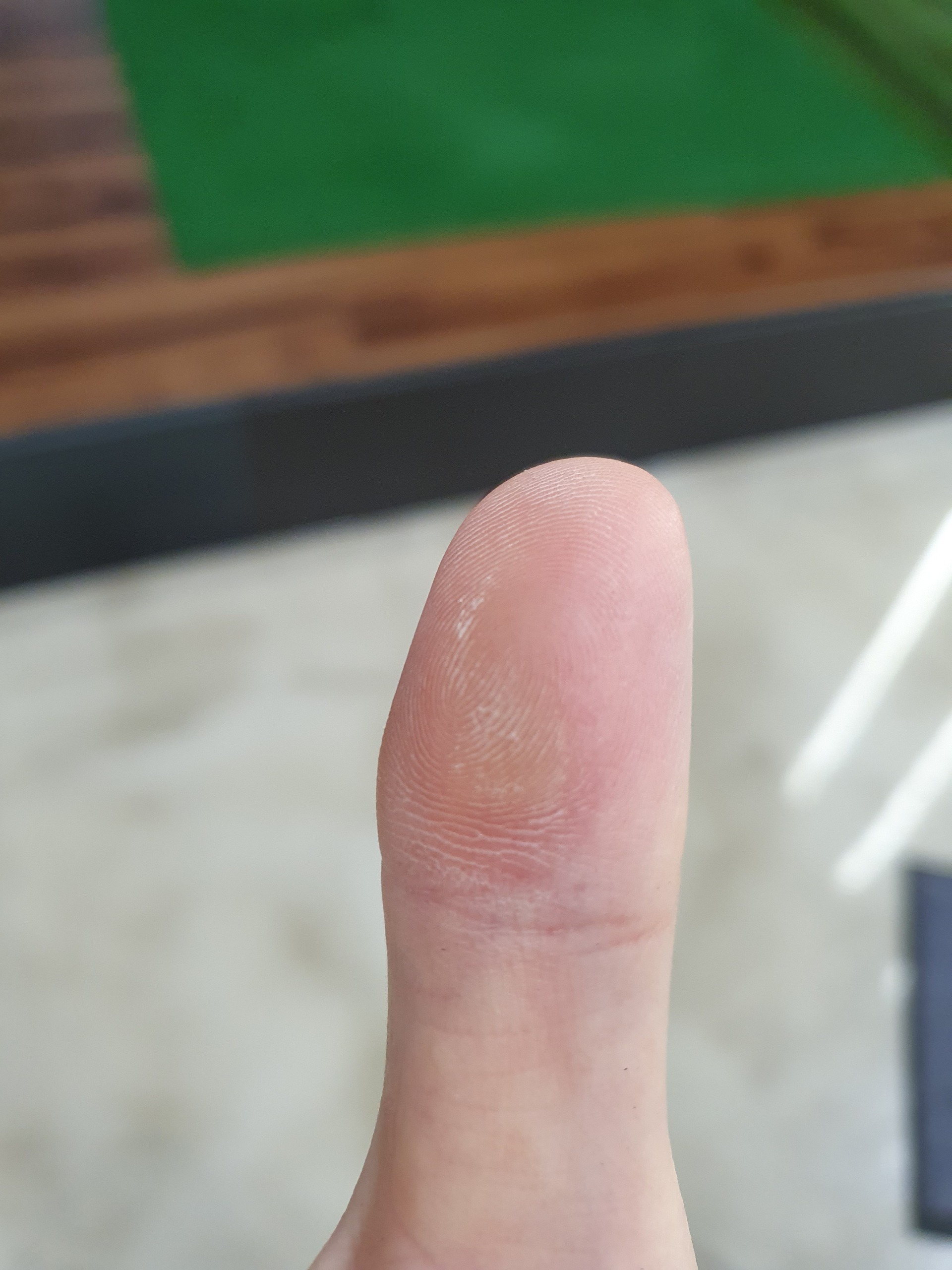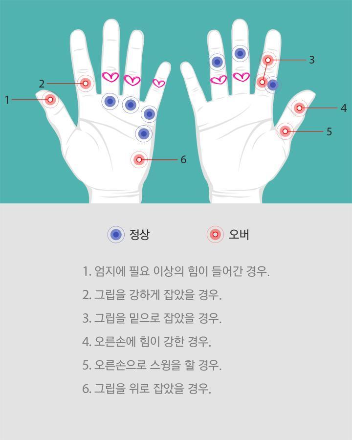 오른손 저부분은 래깅아주 깊게 하시는 프로님들에게서 자주 봤습니다. 볼이 잘 날아간다면 정상이에요 |