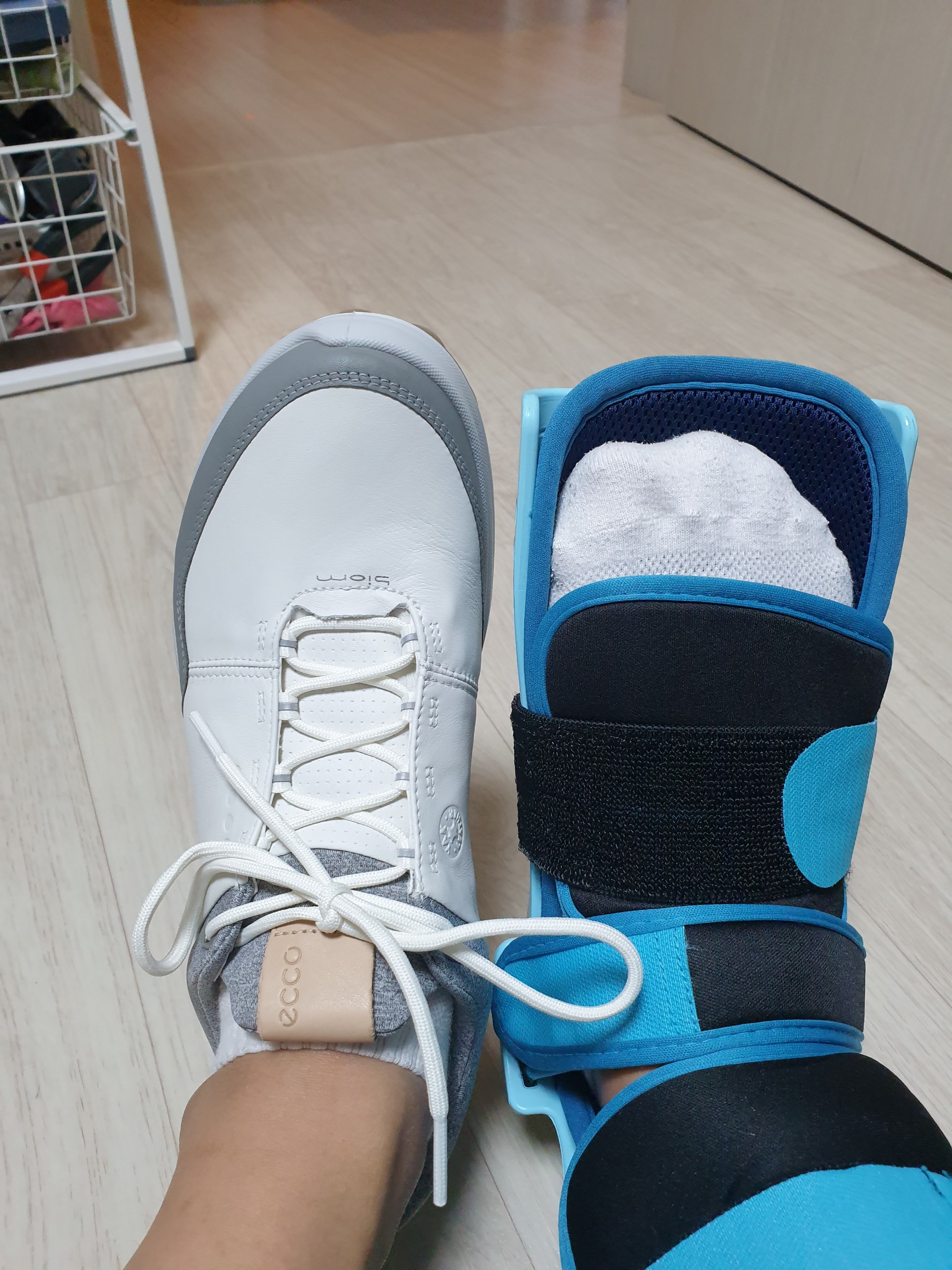 앞으로 일주일은 더 깁스를 해야 하지만, 아쉬운 마음에 왼발에라도 한번 신어봤는데...좋네요 ㅠㅠ