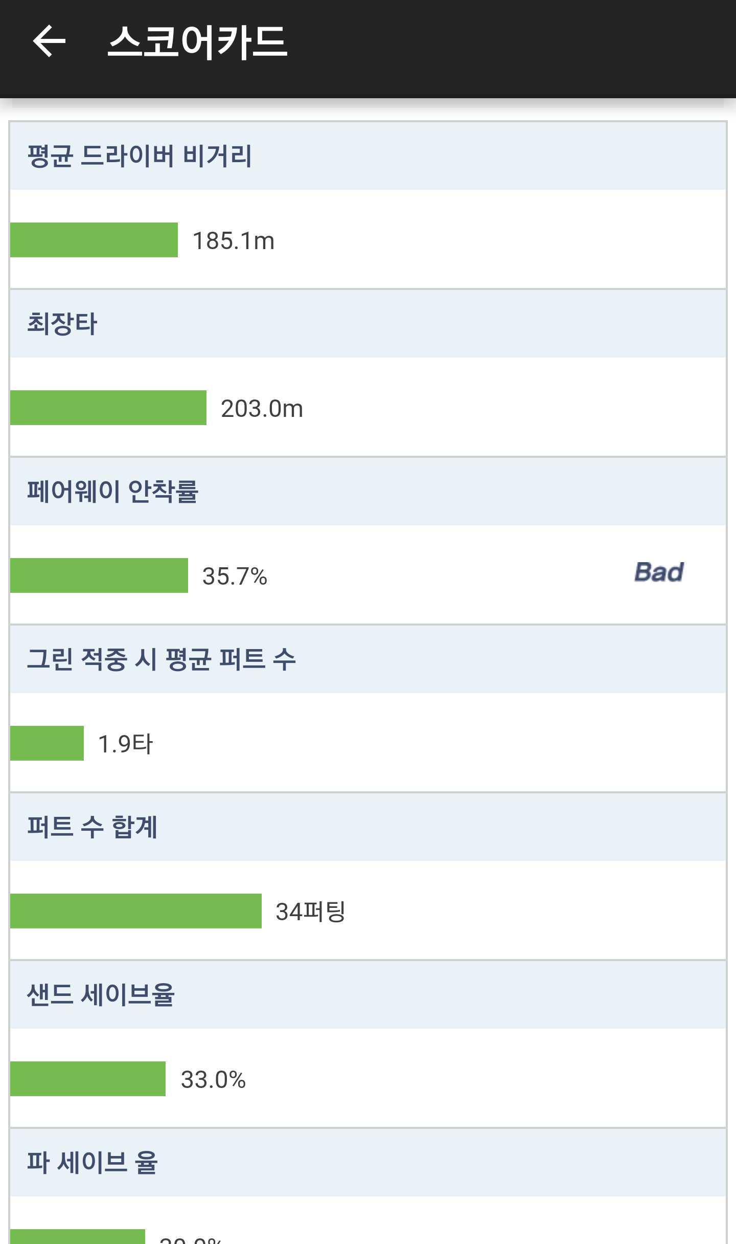 거리보단 좀더 방향성이나 정확성이 좋았음 싶어요..많이 노력해야겠습니다 |
