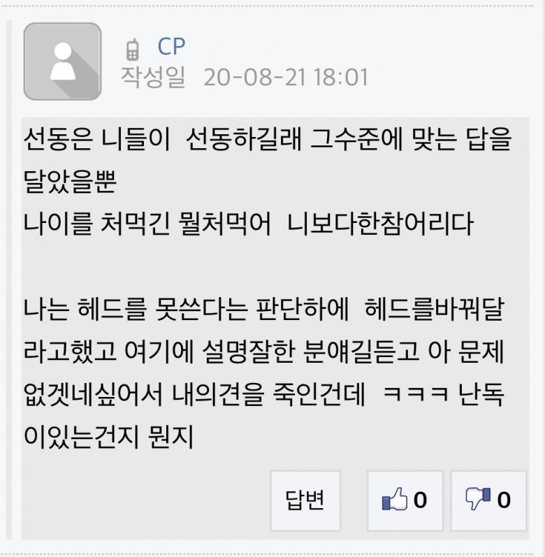 지금은 글 수정하고 탈퇴하고 빤쓰런 하셨구요.(닉네임: 하동)