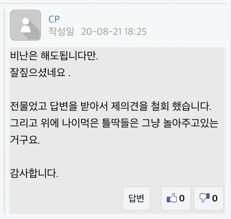 핑에서 그냥 라이각 꺾었다고 보상해 달라고 글올린 분, 닉네임 CP란분 기억하시죠?