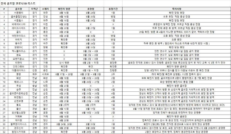 전국 골프장 확진자 방문 현황 > 골프포럼