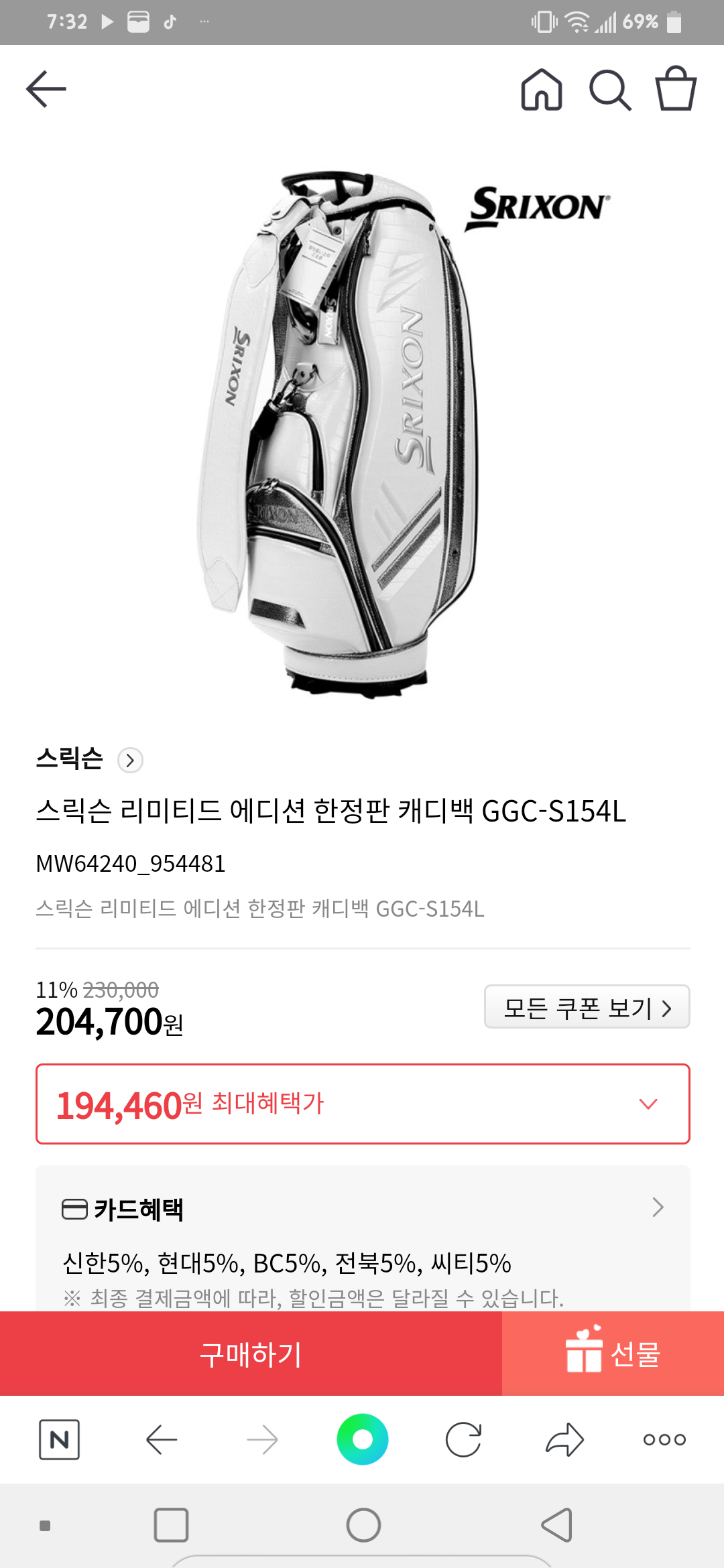 골포 회원님들덕에 짭안사고 스릭슨 캐디백 잘샀어요